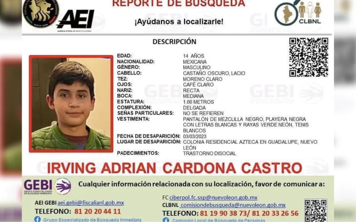 Reportan desaparición de menor de 14 años en Guadalupe, Nuevo León